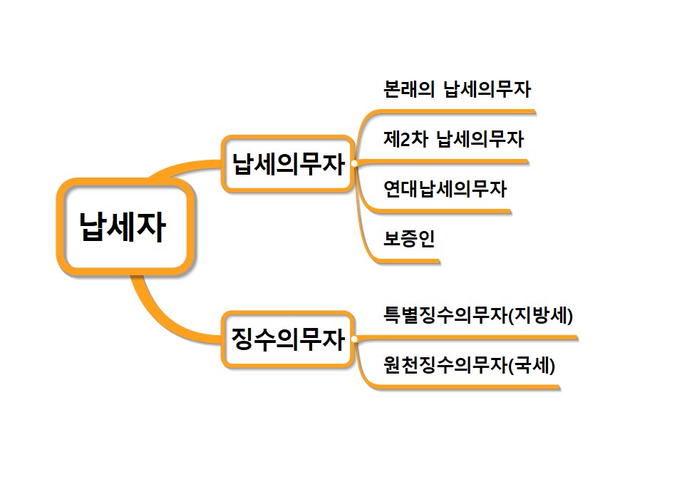 납세자는 납세의무자와 세법에 따라 지방세를 특별 징수하여 납부할 의무를 지는 자를 말한다. 납세의무자에는 본래의 납세의무자, 제2차 납세의무자, 연대납세의무자, 보증인 등이 있고, 징수의무자에는 특별징수의무자와 원천징수의무자가 있다. 납세의무자는 세금을 납부할 의무가 있는 자를 말한다. 즉, 납세의무자는 세금을 납부해야 하는 사람이다. 소득에는 세금이 따라 붙는데 금융소득, 근로소득, 부동산소득, 경품당첨소득, 복권당첨소득 등 소득유형을 불문하고 소득이 생긴 사람은 세금을 납부해야한다. 납세의무자는 개인과 법인이 있는데 개인도 돈을 벌면 세금을 납부하고 법인 즉 기업도 돈을 벌면 세금을 납부할 수가 있다. 즉, 개인이나 법인 등이 바로 납세의무자가 될 수 있다. 제2차 납세의무자는 납세자가 납세의무를 이행할 수 없는 경우에 납세자를 갈음하여 납세의무를 지는 자를 말한다. 즉, 확실하게 조세를 징수하기 위하여 원래 납세의무자의 재산을 체납처분해도 조세가 부족할 때 원래 납세자를 대신하여 납세의무를 지는 자를 말한다. 연대납세의무자는 하나의 납세의무에 관하여 납세의무자가 납세에 관한 의무를 이행할 수 없는 경우에 해당 납세의무자 와 관계있는 자로 하여금 상호 연대하여 동일한 납세의무를 지게 하는 자를 말한다. 보증인이란 납세자의 지방세 또는 체납처분비의 납부를 보증한 자를 말한다.